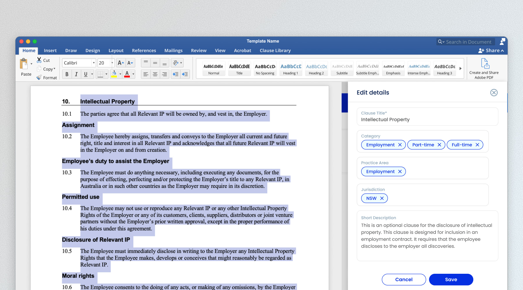 Access firm-approved clauses through the Word add-in